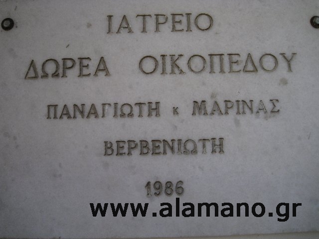 Ο Παναγιώτης Ι. Βερβενιώτης προσέφερε το χώρο, που σήμερα στεγάζεται το ιατρείο, για την οικοδόμηση κτίσματος που θα αποτελούσε το μόνιμο χώρο του συσσιτίου. Αργότερα, για λόγους που όλοι γνωρίζουμε, ο θεσμός αυτός δεν προχώρησε με αποτέλεσμα ο χώρος αυτός να μείνει ανεκμετάλευτος